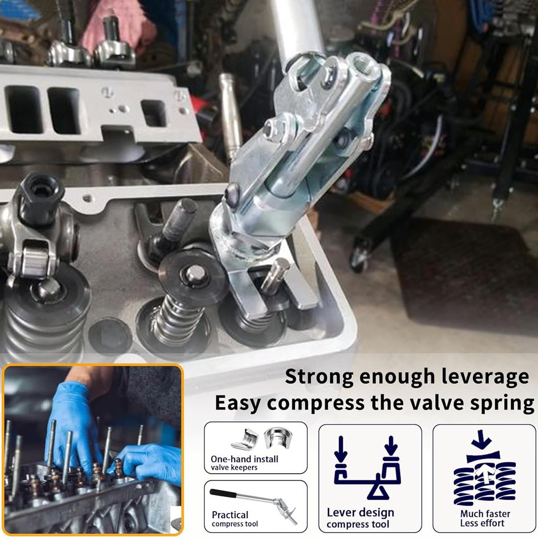 LEVERAGE DESIGN: Utilizes leverage to compress even the strongest springs. ensuring efficient valve spring maintenance.