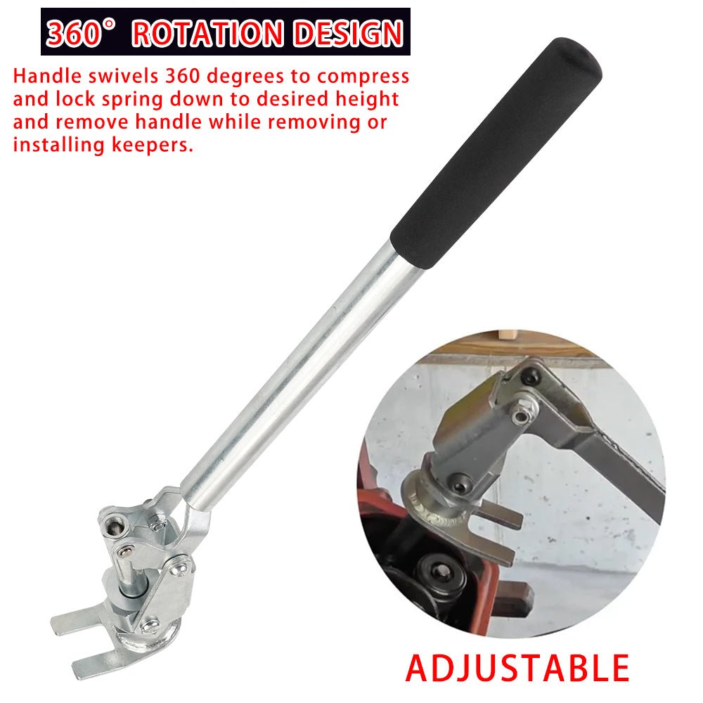 360-DEGREE ROTATION: Handle rotates fully. allowing precise spring compression. lock-in. and easy keeper removal.