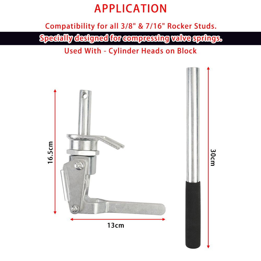 COMPATIBILITY: Suitable for all 3/8″ and 7/16″ rocker studs. specifically designed for compressing valve springs with the cylinder head still in place.