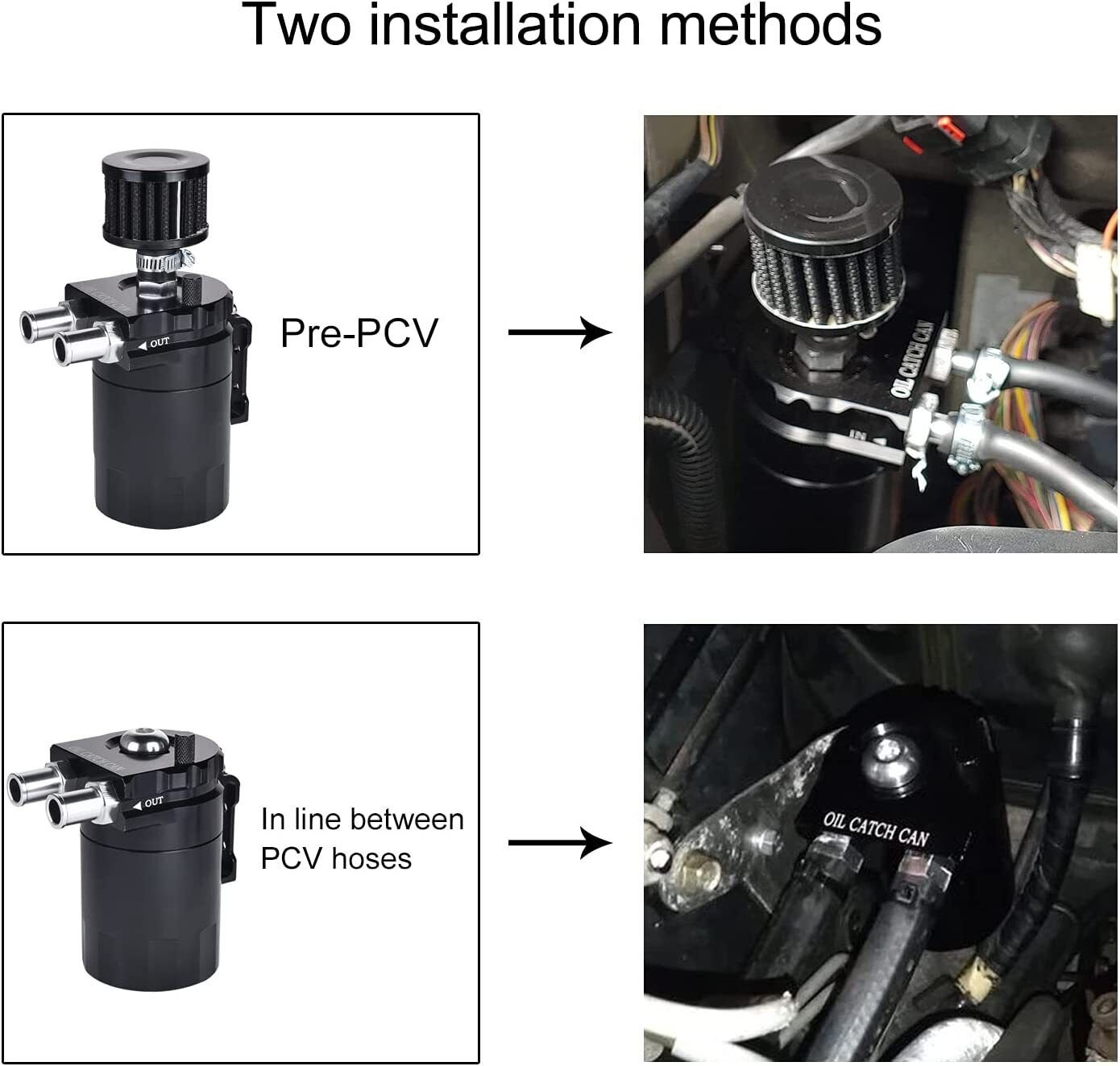 【Cold Weather Notice】At or below freezing temperatures. the crank vent system generates more moisture. which increases the risk of freezing. Clean your oil catch can weekly. or reinstall the original PCV hose during extreme cold.