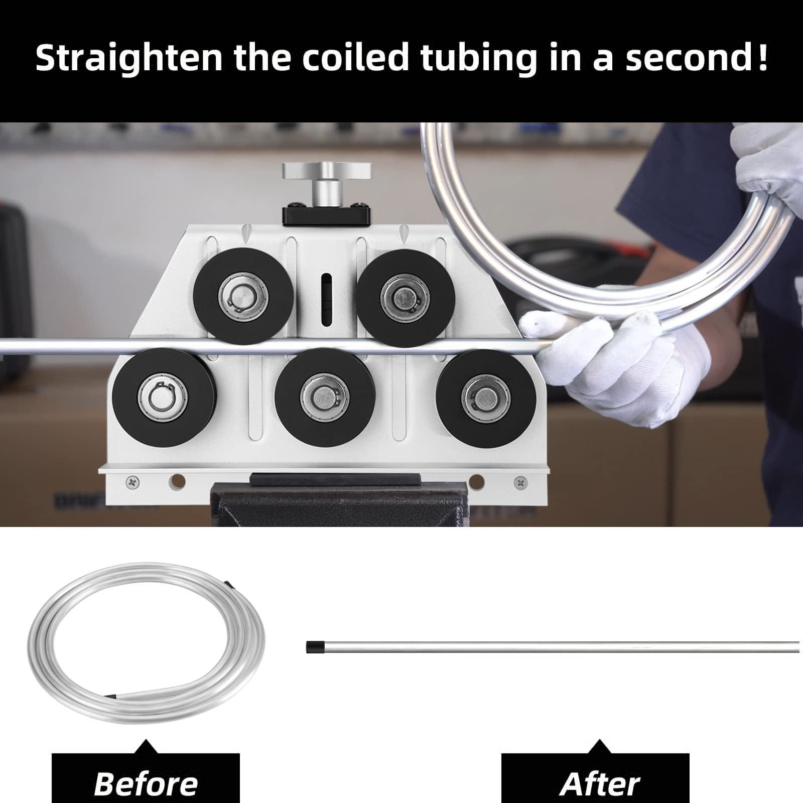 Convenient To Use: The pipe straightening machine can be fully adjusted and can be installed in a vise or manually operated. Simply feed the coil from one side and slide it back and forth to straighten it. Tie nylon pliers for better grip.