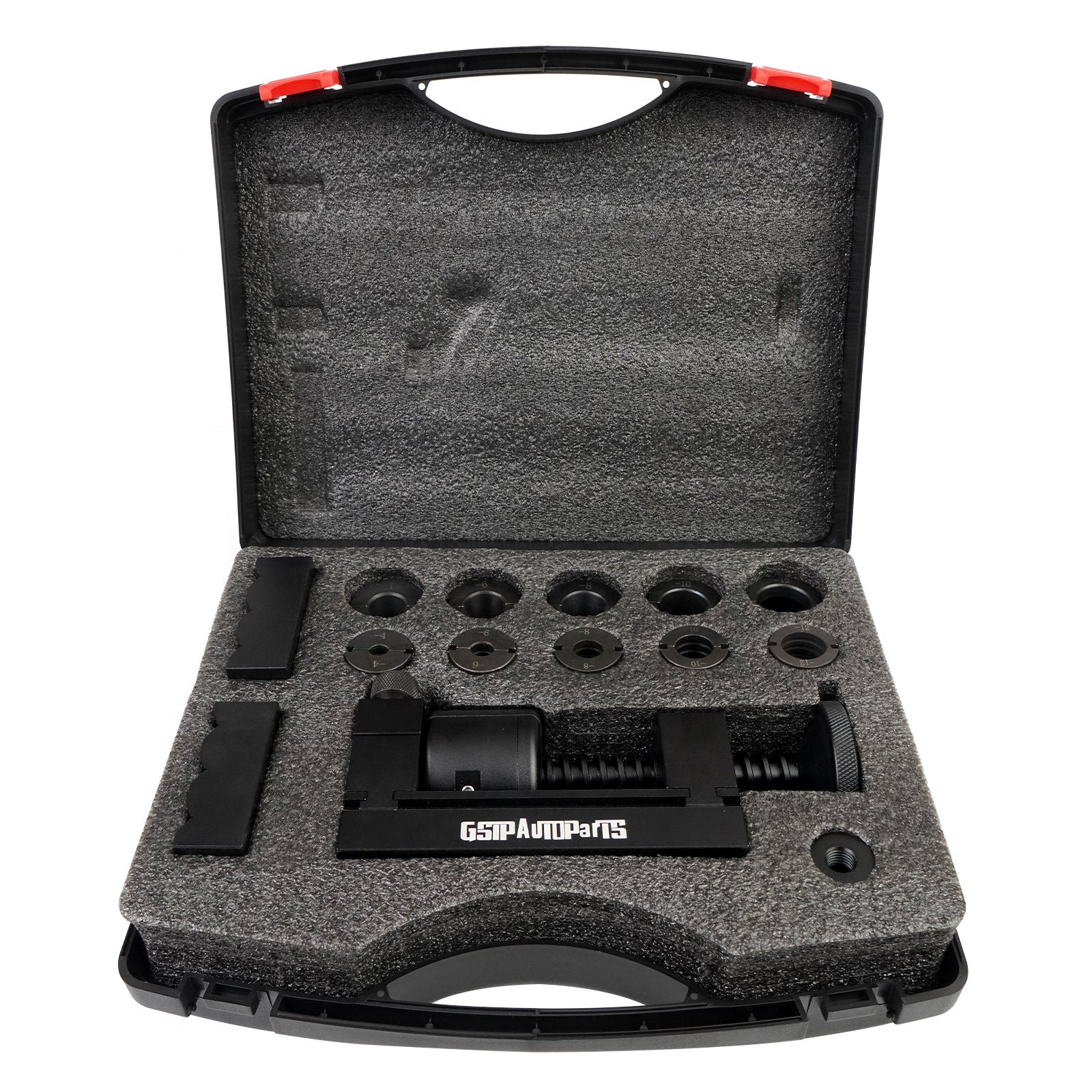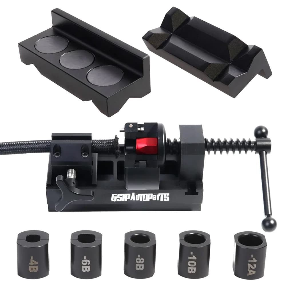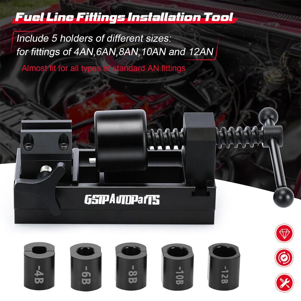 There are 5 holders for Fittings of 4AN.6AN.8AN.10AN and 12AN. To keep the fuel line quick connectors secured. custom jaws were designed for fittings to hold the straights in place.