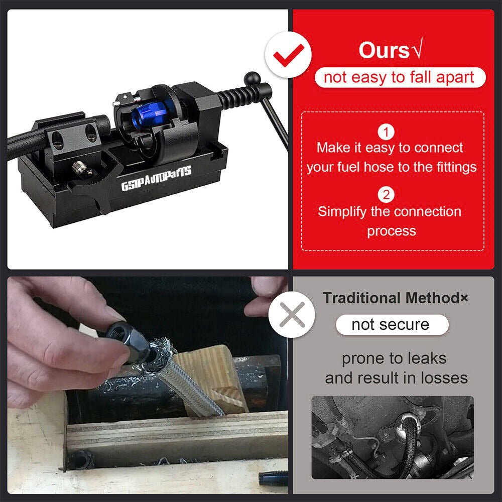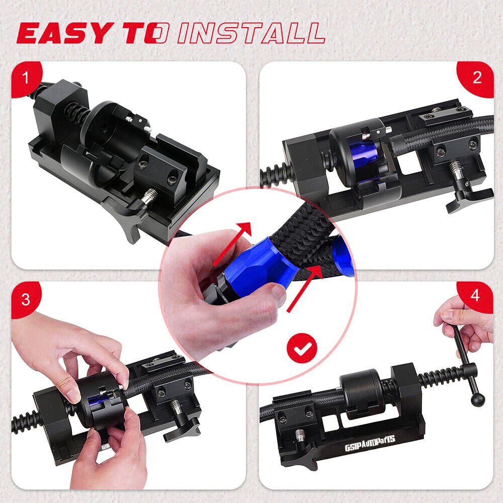 Hose assembly begins with the press. This makes it easy to connect your Fuel hose to the Fittings.