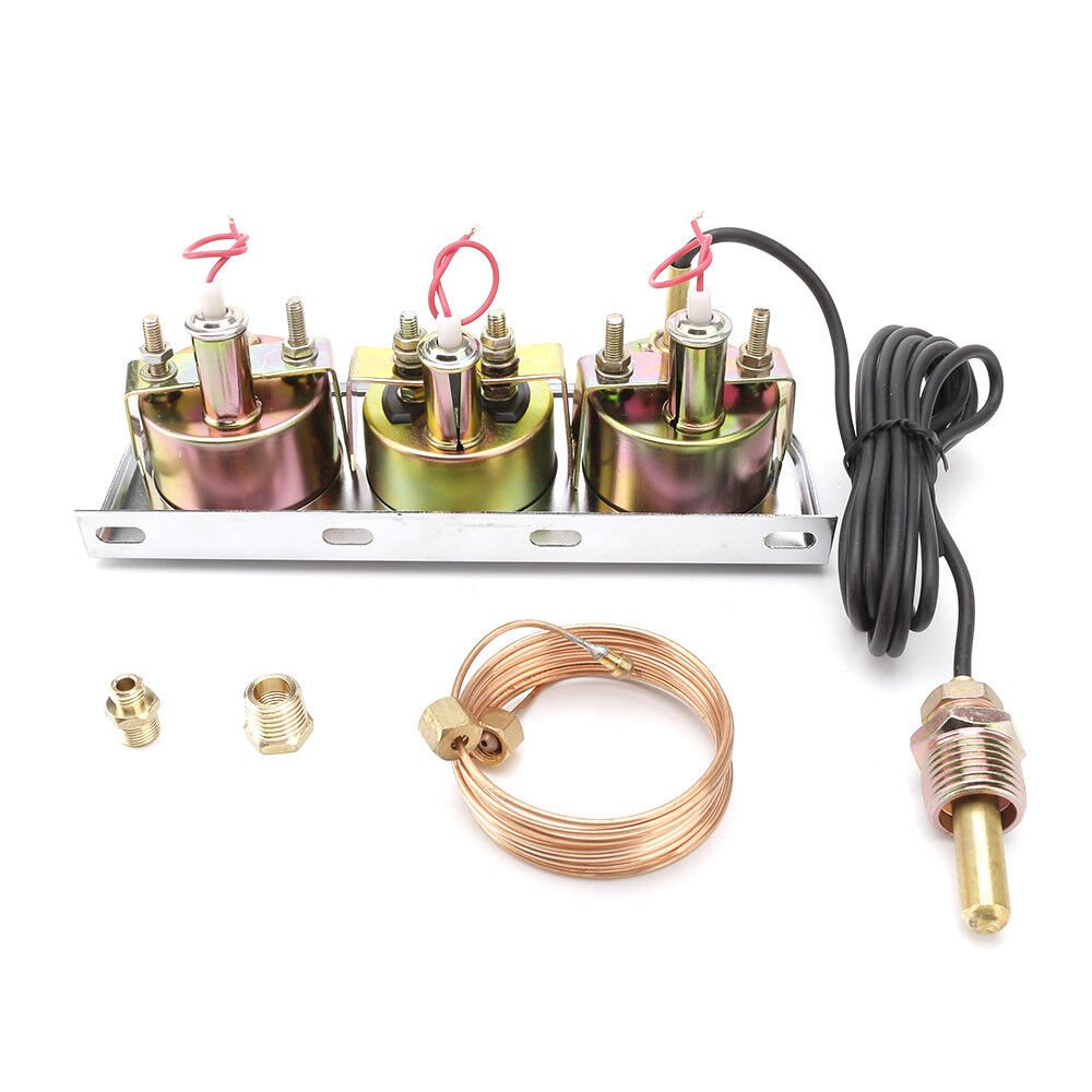 Mechanical 2” 52mm Chrome Triple Gauge Set Water Temp Oil Pressure AMP Meter